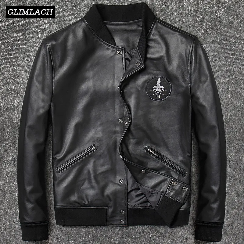 .Images for 2018 Fashion Genuine Leather Aviation Bomber Jacket Men Casual Black Real Leather Aviator Jacket Sheepskin Motorcycle Streetwear