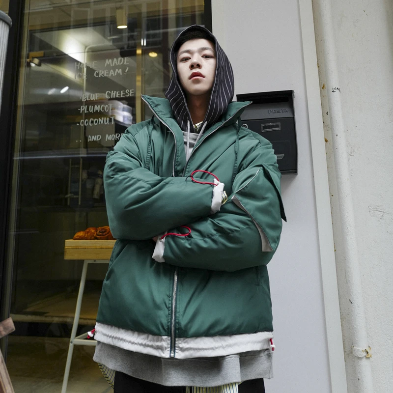 .Gallery for 2018 Winter Men's Fashion Snow Jackets Street Solid Color Parkas Cotton-padded Clothes Loose Casual In Warm Brand Coats M-XL
